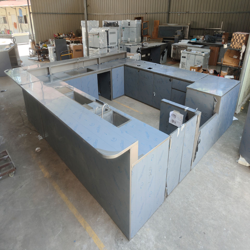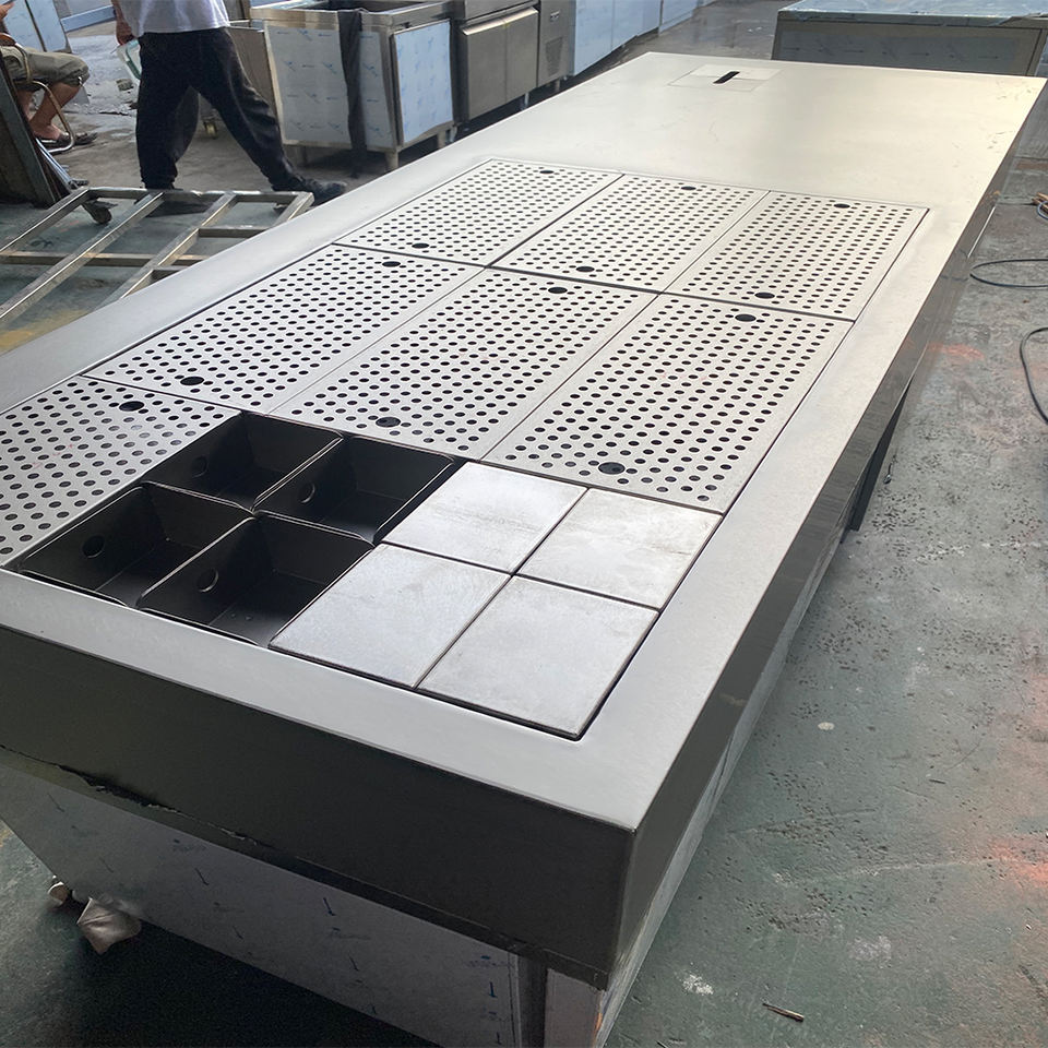สถานีผสมสแตนเลสพร้อมถาดรองน้ำหยด งานหนัก ขัดเงา สำหรับงานจัดเลี้ยงกลางแจ้ง