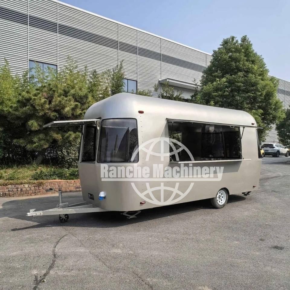 รถเข็นบาร์เคลื่อนที่สแตนเลสสำหรับร้านอาหาร รถพ่วงขายอาหาร บริการเบียร์ พิซซ่า บาร์บีคิว