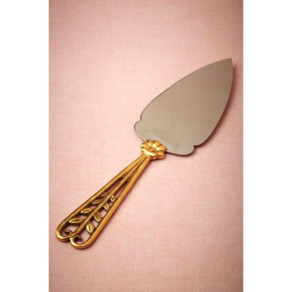 ชุดเสิร์ฟเค้กตกแต่งสไตล์โมเดิร์นทำจากสแตนเลสพร้อมด้ามจับชุบทอง