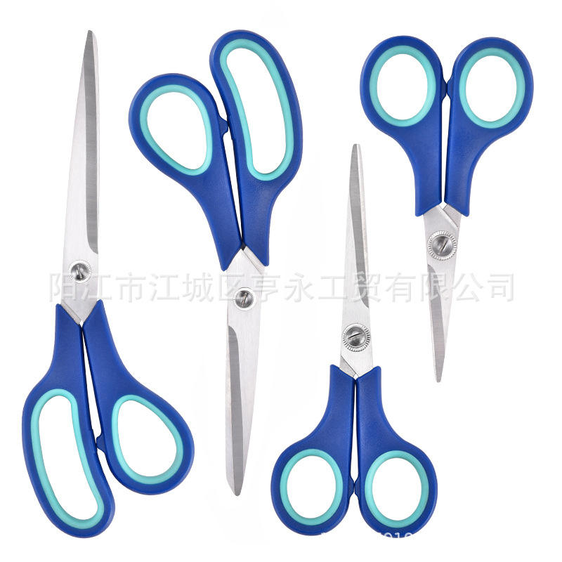 ชุดกรรไกรอเนกประสงค์สแตนเลส 4 ชิ้น สีฟ้า สำหรับใช้ในบ้านและสำนักงาน ขนาด 9.5 8.5 6.5 5.5 นิ้ว