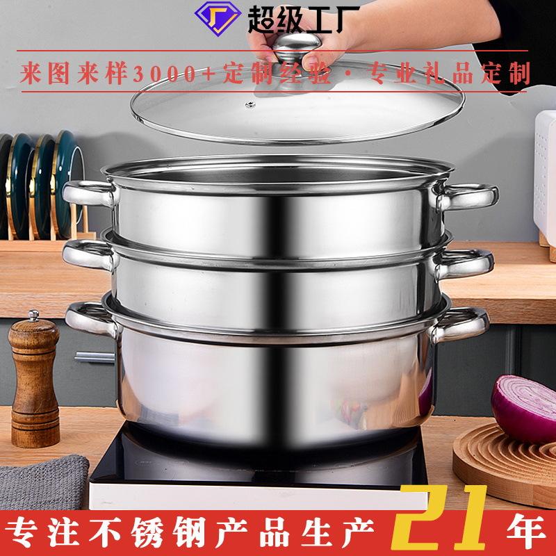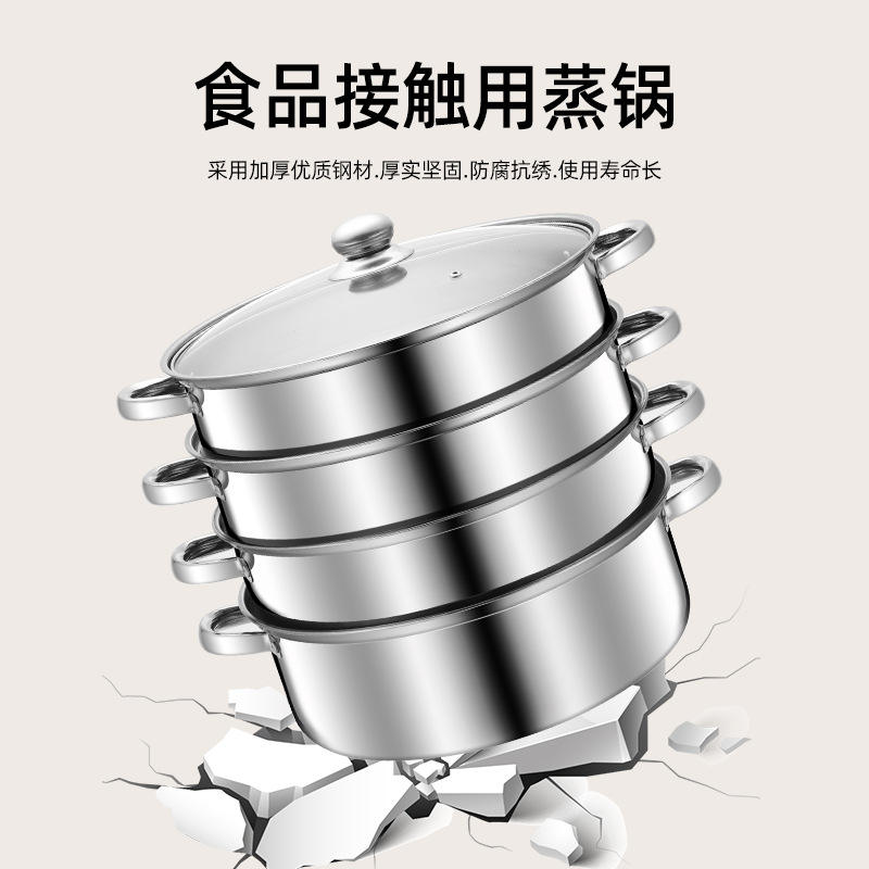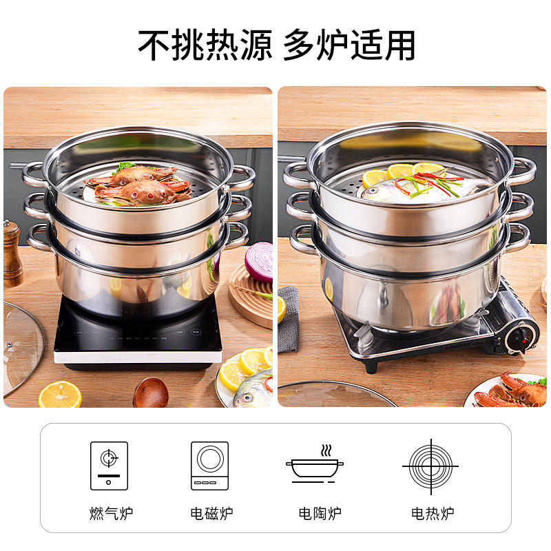 หม้อนึ่งสแตนเลสหลายชั้น 4 ชั้น พร้อมฝาปิด สำหรับเตาแม่เหล็กไฟฟ้าและเตาแก๊ส