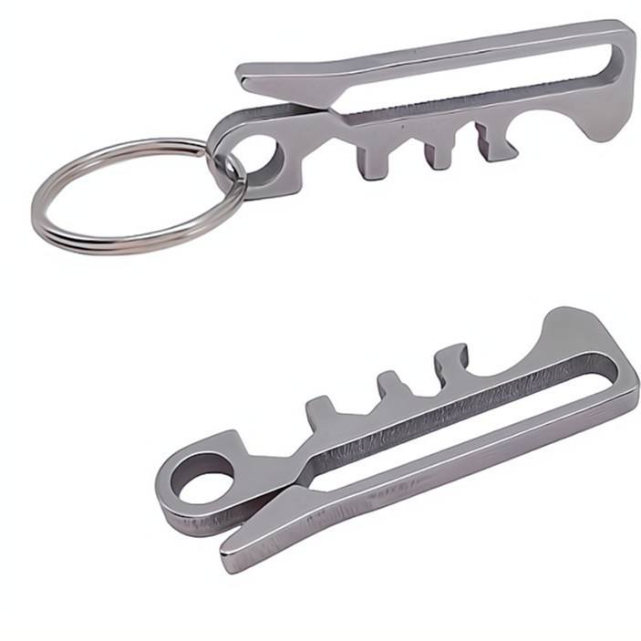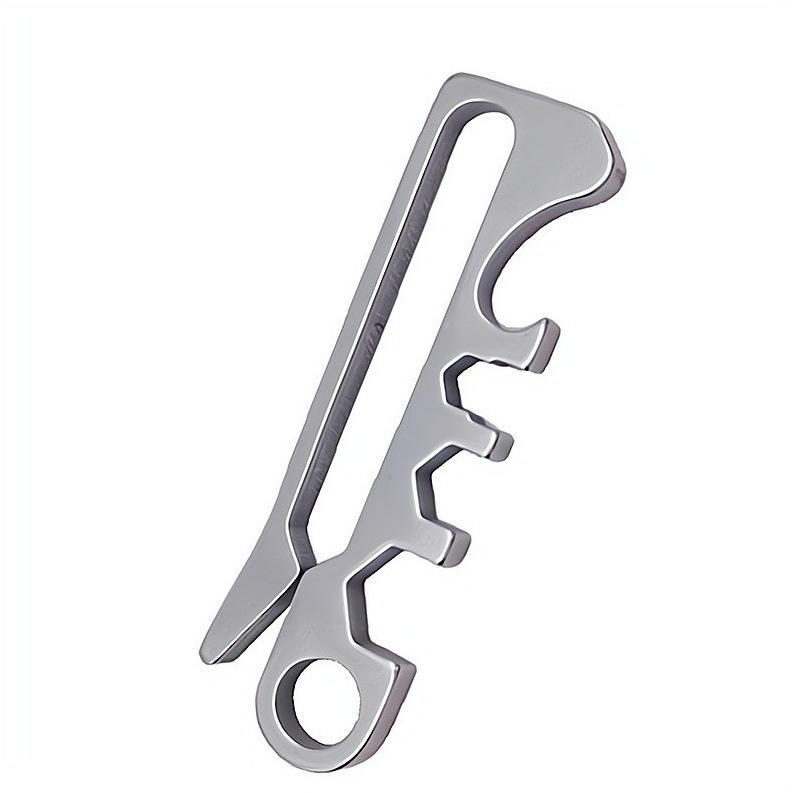 เครื่องมือพวงกุญแจอเนกประสงค์สแตนเลสพร้อมที่เปิดขวดประแจหกเหลี่ยมตะขอคลิปขนาดพกพา