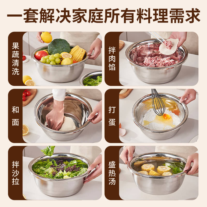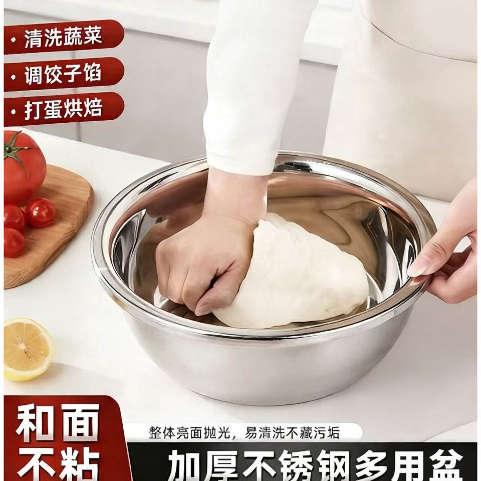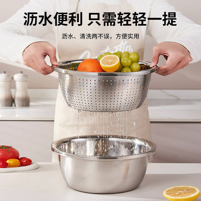 ตะกร้ากรองอเนกประสงค์สแตนเลสขนาดใหญ่ สำหรับนวดแป้ง ล้างผัก ชามล้างแบบหนาพิเศษ