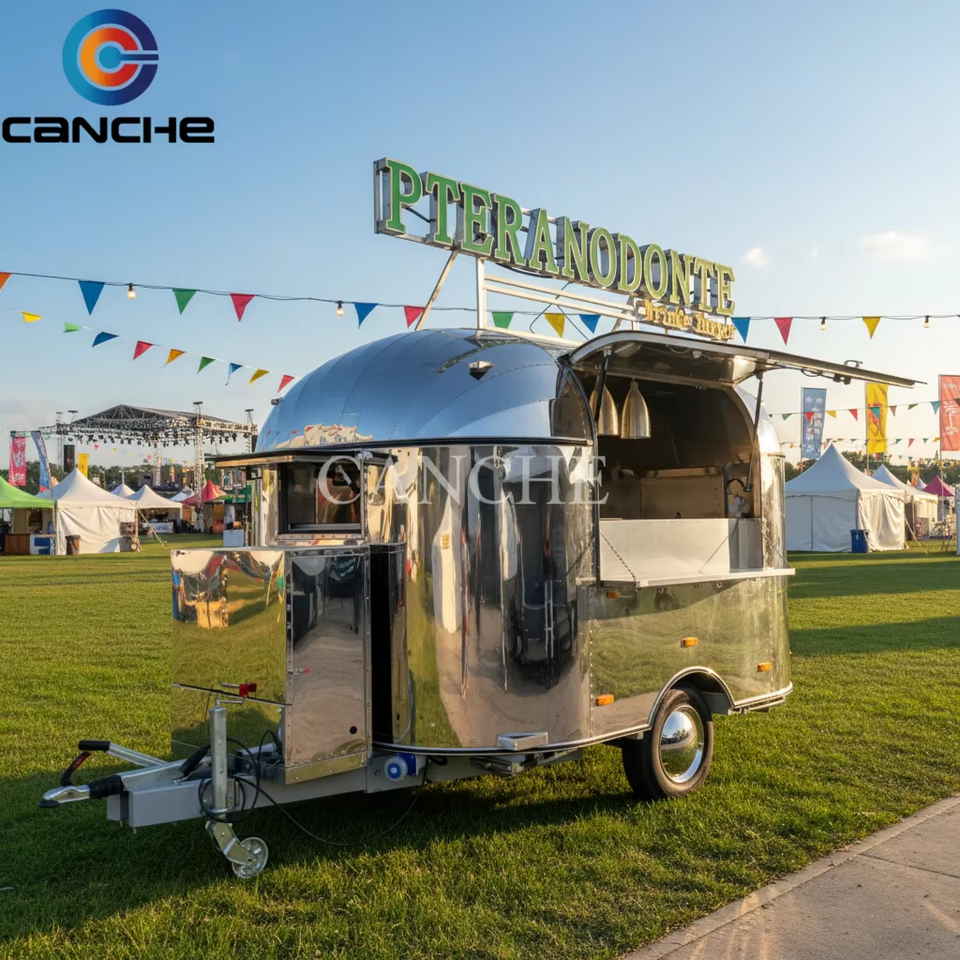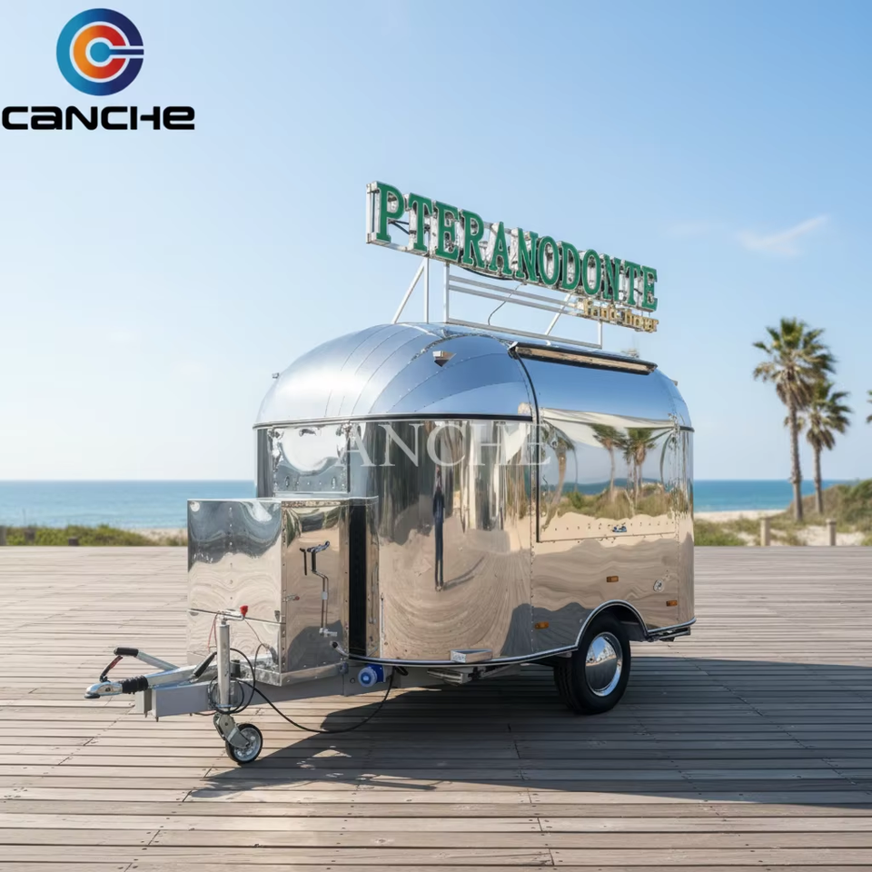 รถพ่วงสเตนเลสอเนกประสงค์ พร้อมหมายเลข VIN สำหรับขายอาหารเคลื่อนที่บนท้องถนน ได้รับใบรับรอง CE