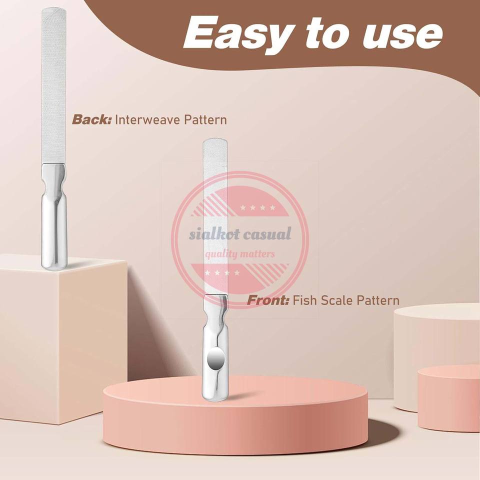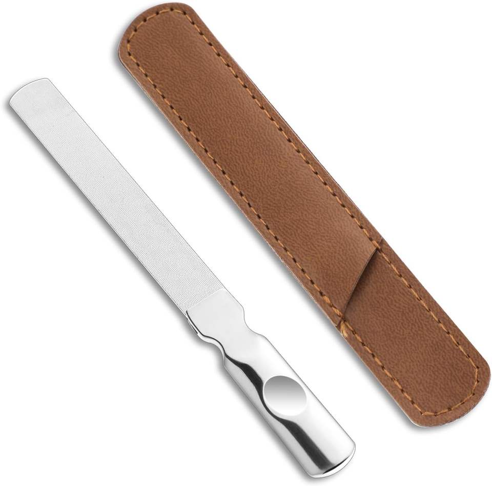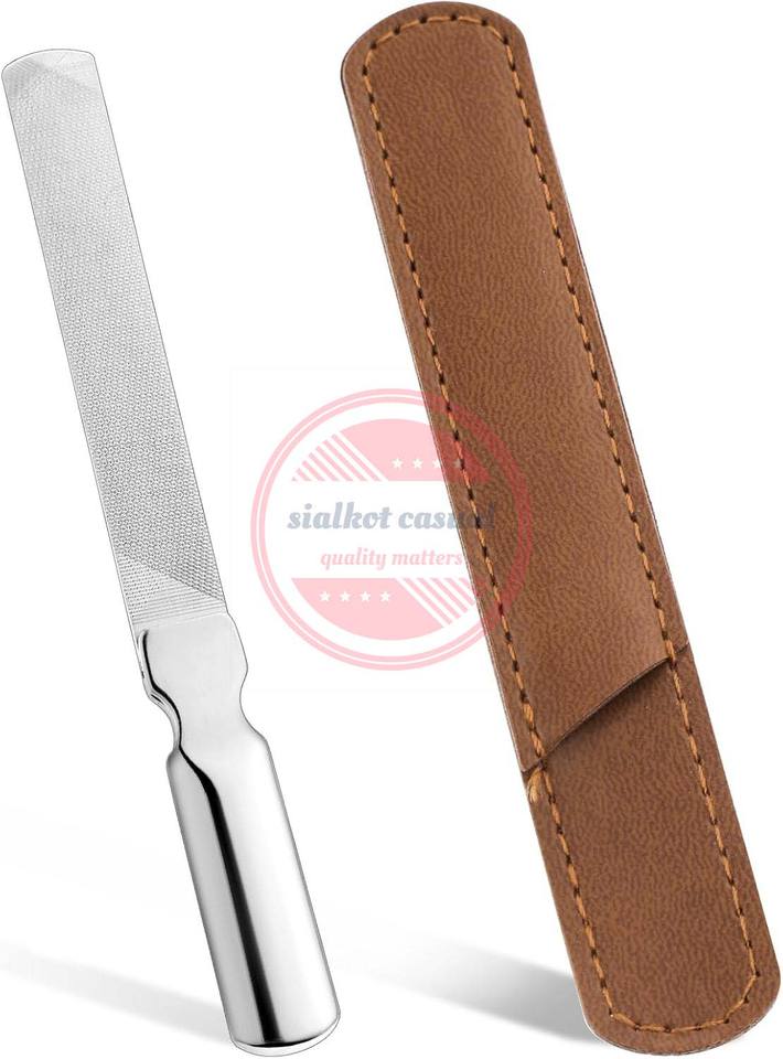 ตะไบเล็บโลหะสองด้านพร้อมด้ามจับกันลื่นและเคสหนัง