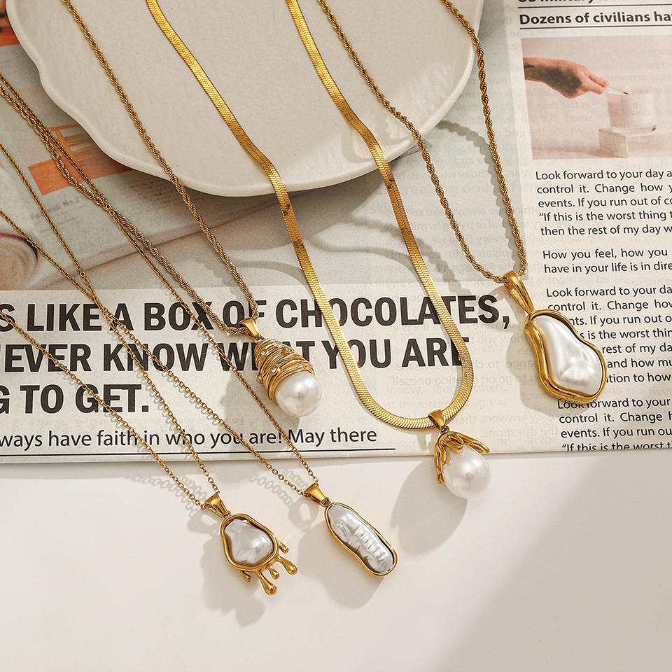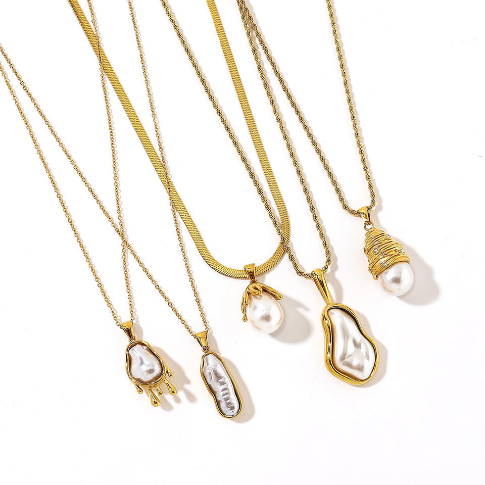 สร้อยคอสแตนเลสเลียนแบบมุกจี้รูปทรงเรขาคณิตปรับได้สไตล์ยุโรปแฟชั่นเครื่องประดับของขวัญสำหรับผู้หญิง