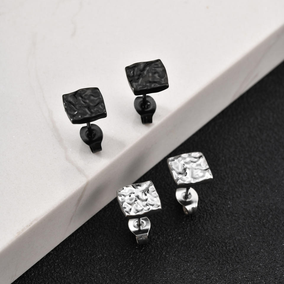 ต่างหูสแตนเลสทรงสี่เหลี่ยมมินิมอล ดีไซน์ลาวาแบบไม่สมมาตร จีบระบาย สำหรับผู้ชายและผู้หญิง
