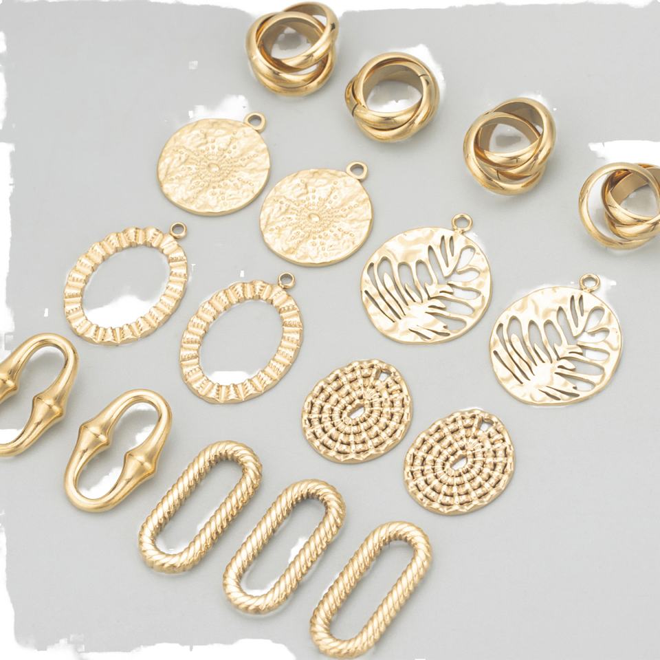 อุปกรณ์ตกแต่งเครื่องประดับรูปดอกไม้มุกชุบทอง 10K ปราศจากนิกเกิล ทำจากสแตนเลส สำหรับทำต่างหู สร้อยคอ DIY พร้อมถุง
