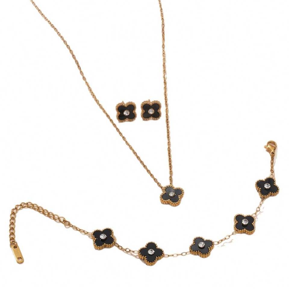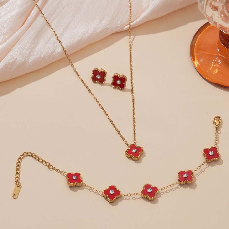 Stainless Steel Non-Fading Double-Sided Four-Leaf Clover Set Necklace Women Fashionable Elegant Light Luxury High-End Niche