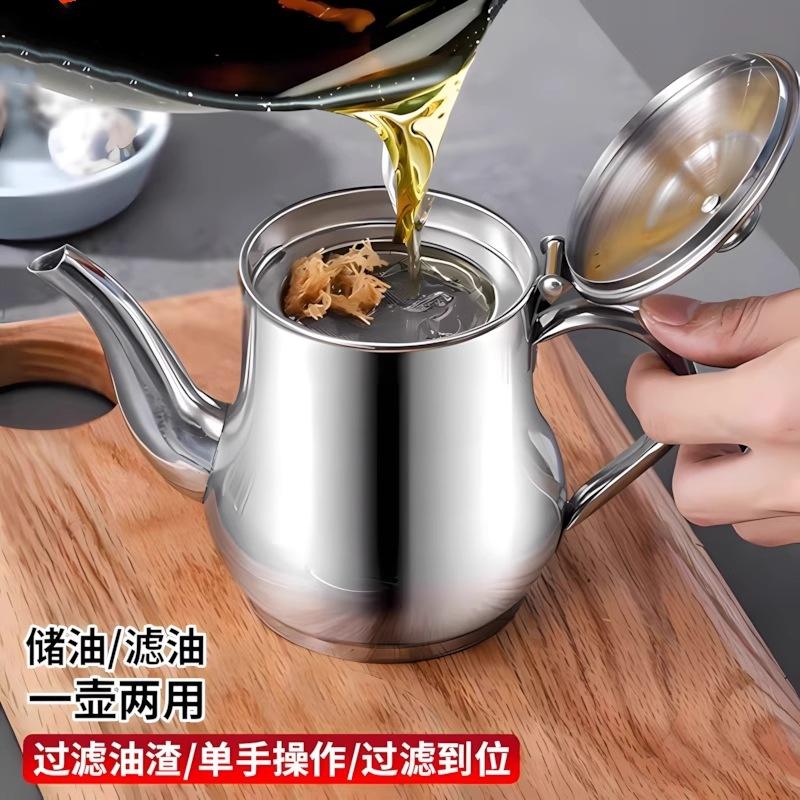 กระป๋องกรองน้ำมันสแตนเลส 32 ออนซ์ ฝาโลหะทรงกลม ป้องกันการรั่วซึม ขวดเก็บของในครัว เชาโจว สปริง 2020