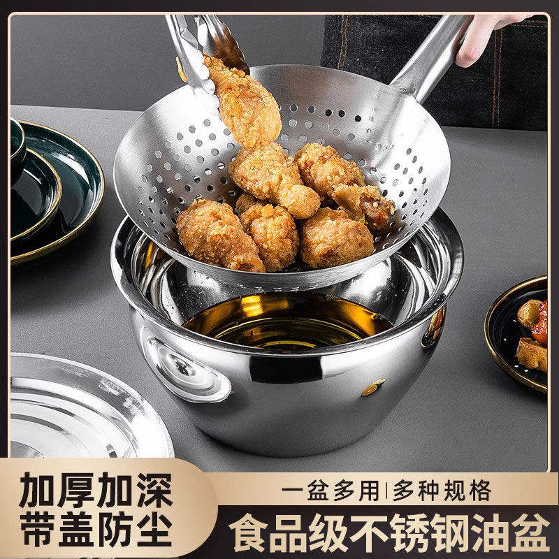 Extra-thick stainless steel oil pan with lidสินค้า