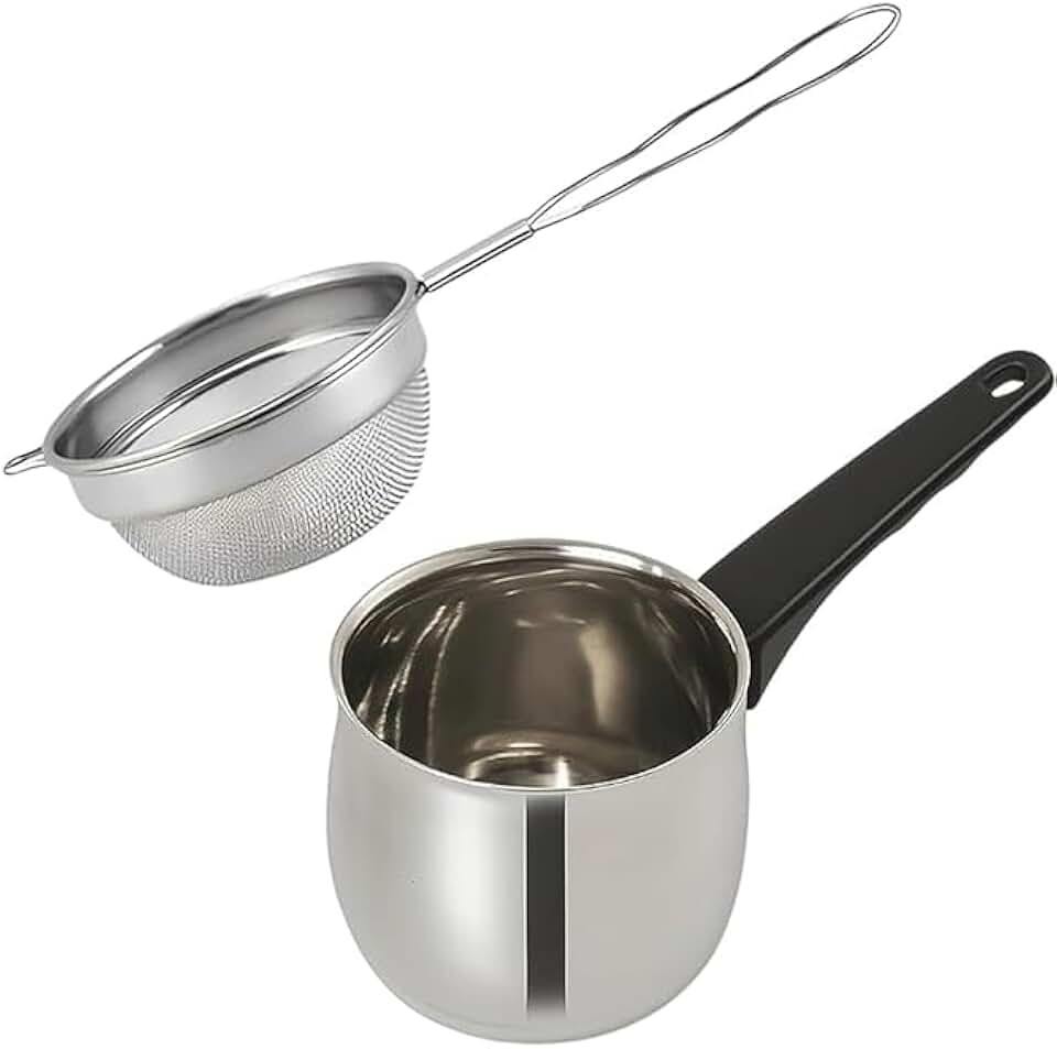 หม้อสแตนเลสพร้อมฝาปิดและที่กรองน้ำมัน ภาชนะเก็บน้ำมันสำหรับครัว กระป๋องกรองน้ำมันทอด