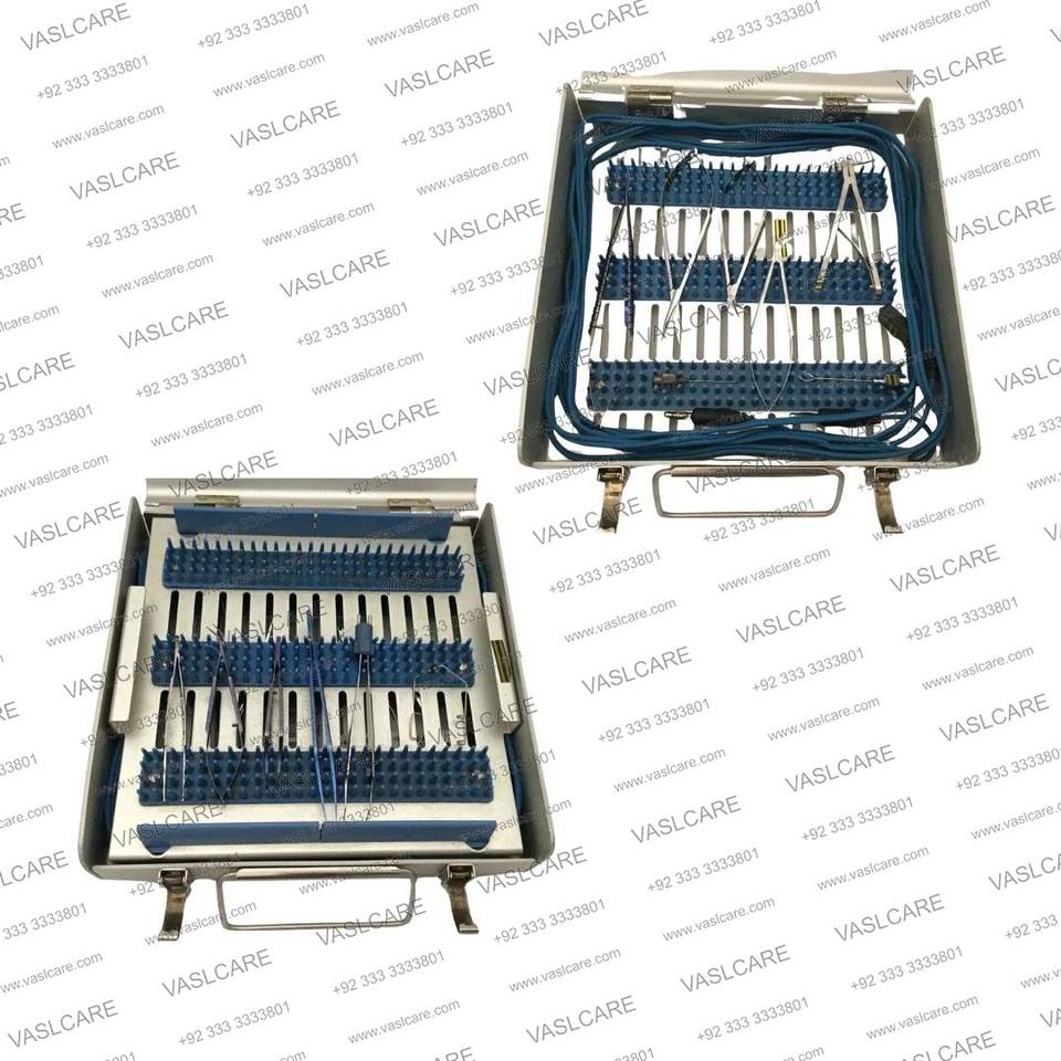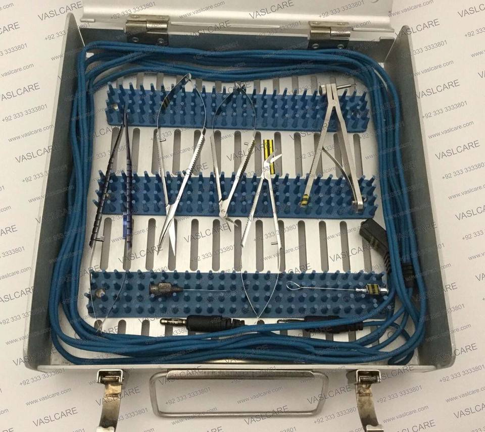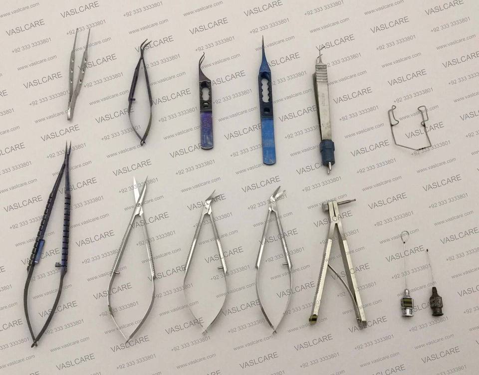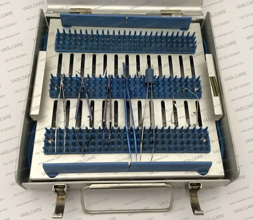 ชุดเครื่องมือผ่าตัดตาสแตนเลสพร้อมกล่องด้านในและแผ่นรอง13ชิ้นโดย vaslcare