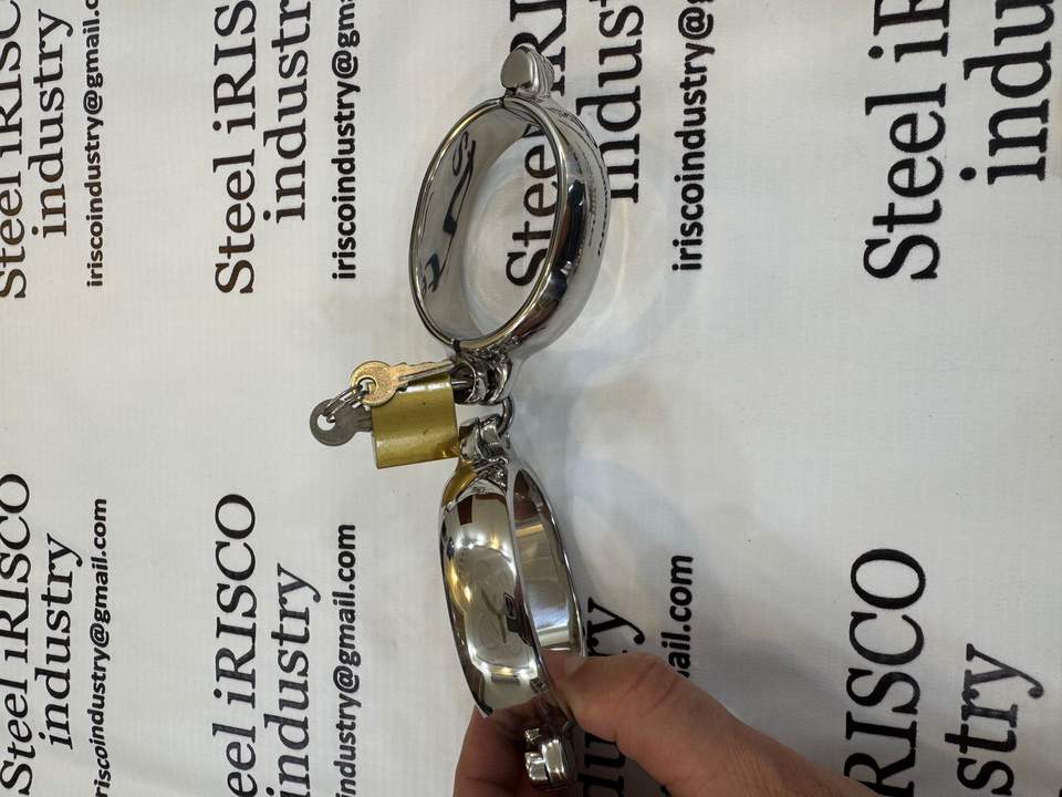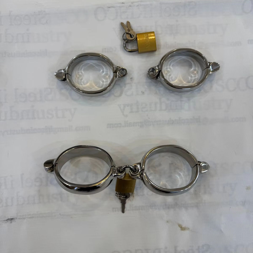 กุญแจมือรูปวงรีสแตนเลสพร้อมตัวล็อคแบบแพดเดิล ข้อเท้าโลหะแบบมีตัวล็อค กุญแจมือแบบคินกี้ อุปกรณ์พันธนาการโลหะทำมือเพื่อความสบาย