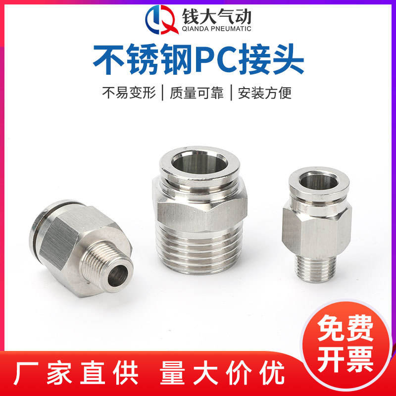 ข้อต่อสแตนเลสแบบเชื่อมต่อเร็วสำหรับท่อลม พร้อมข้อต่อตรงแบบเกลียว ข้อต่อแบบเชื่อมต่อเร็วสำหรับระบบนิวเมติก