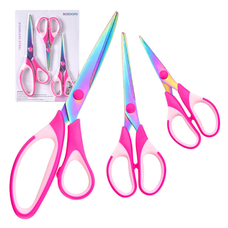 ชุดกรรไกรตัดกระดาษสแตนเลส 5 7 8 นิ้ว ด้ามจับสีชมพูเคลือบไทเทเนียม เครื่องมือตัดงานฝีมือสำนักงาน