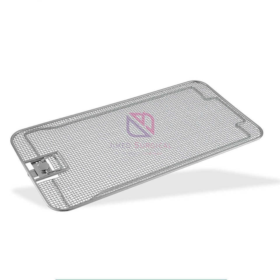 ตะกร้าสแตนเลสสำหรับผ่าตัดแบบมีรูพรุนพร้อมฐานแบนและฝาปิดด้านข้างถาดเครื่องมือทางการแพทย์ที่ผ่านการรับรอง CE ISO
