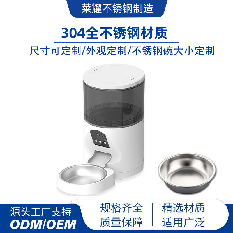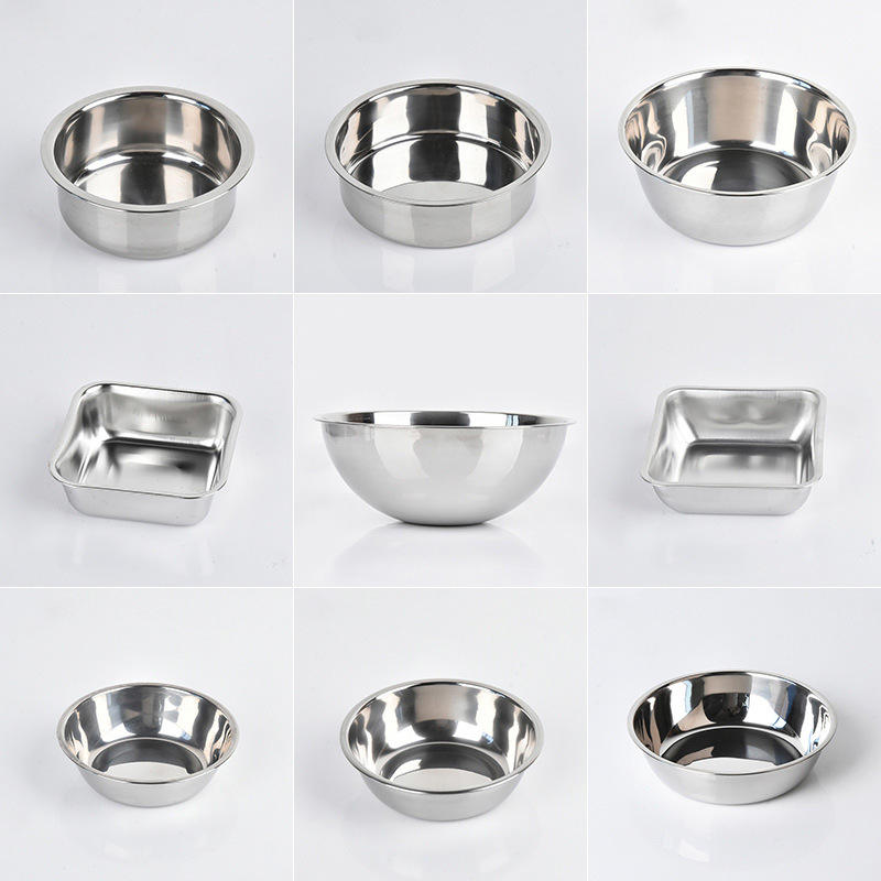 ชามอาหารสัตว์เลี้ยงสแตนเลส 304 สำหรับสุนัขและแมว สีเงิน ชามให้อาหารทนทานพร้อมซับใน ชามให้อาหารอัตโนมัติ