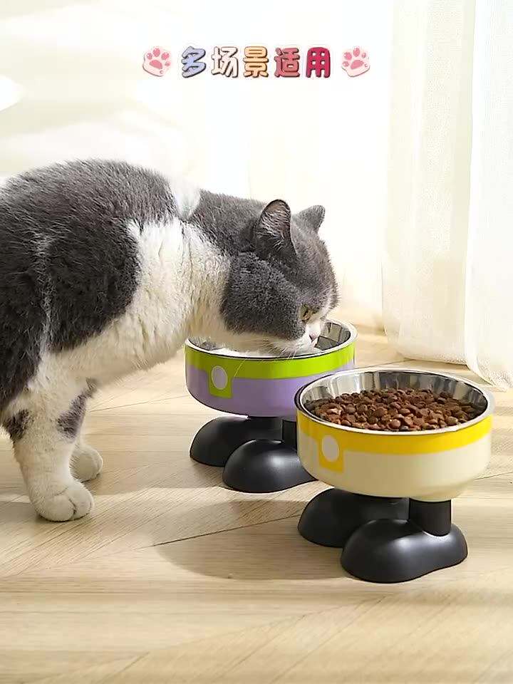 ชามสแตนเลสสำหรับสัตว์เลี้ยง กันลื่น ใช้กับเครื่องล้างจานได้ ความจุขนาดใหญ่ ยกสูง ป้องกันการกดทับคอ สำหรับสุนัขและแมว
