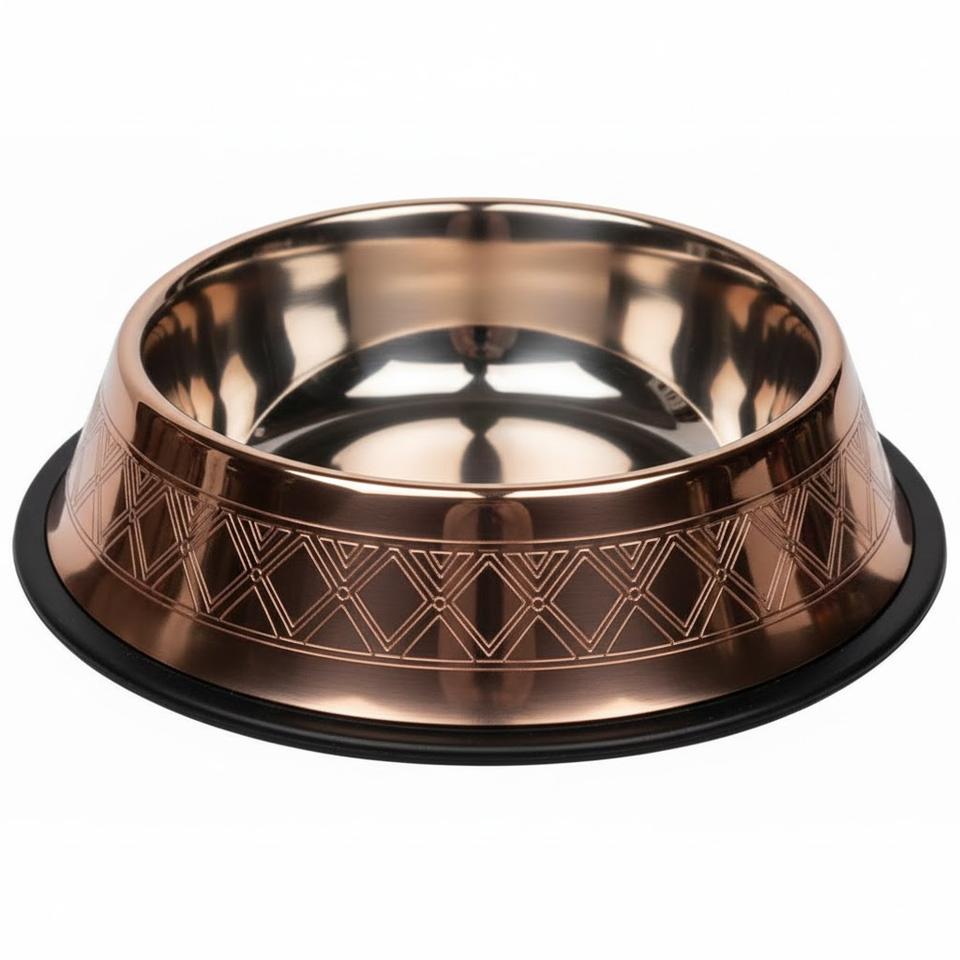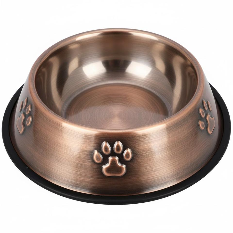 ชามสแตนเลสสำหรับสัตว์เลี้ยง ลายรอยเท้า พร้อมฐานยาง ชามอาหารสุนัข ดีไซน์หรูหรา สีทองแดงบรอนซ์ โซลูชั่นการให้อาหารสัตว์เลี้ยง