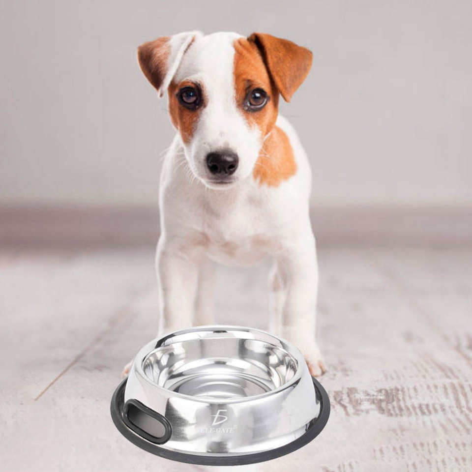 ชามสัตว์เลี้ยงสแตนเลสกันลื่นสำหรับสุนัขและแมวขนาด