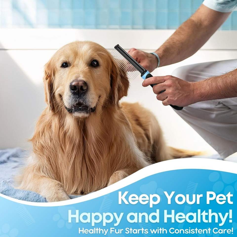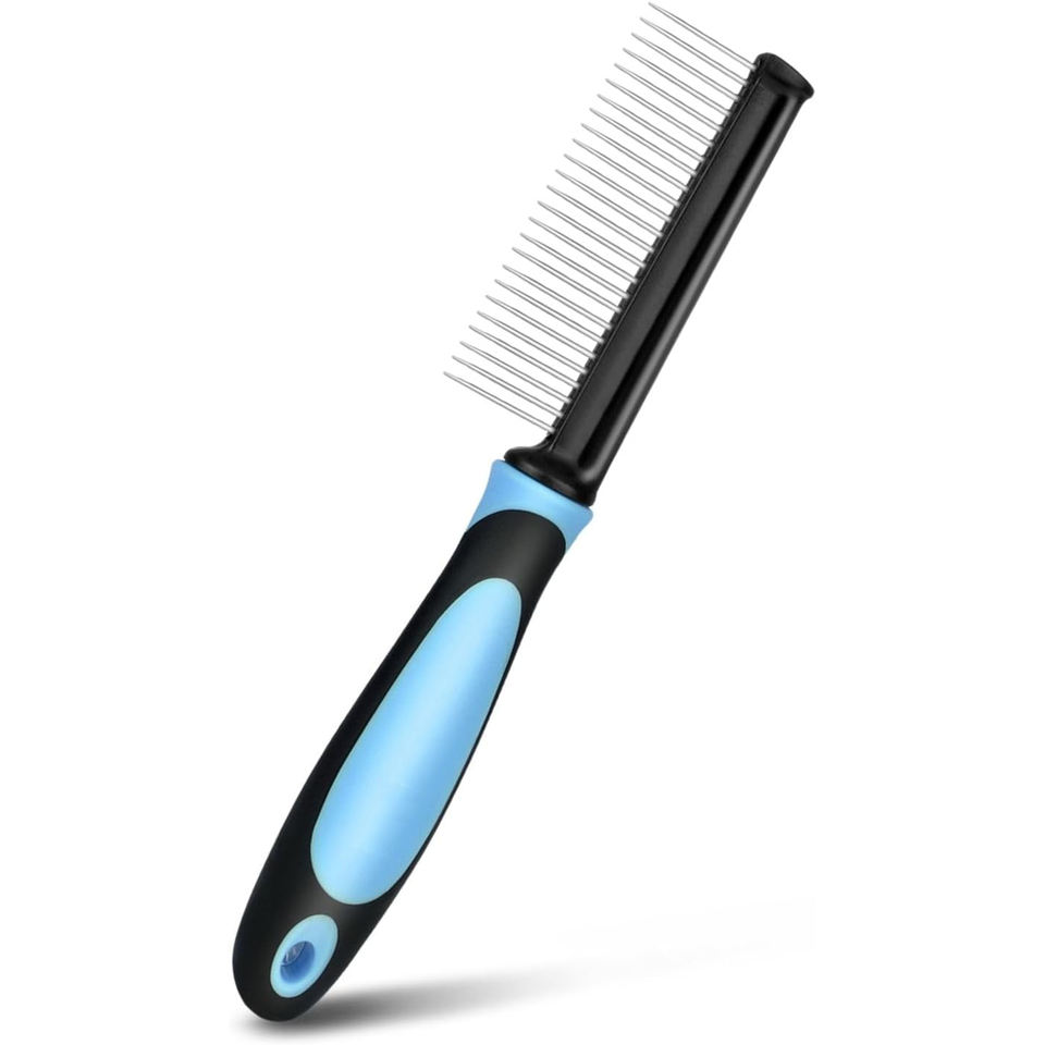 หวีสแตนเลสสำหรับสัตว์เลี้ยงสำหรับแมวและสุนัข ฟันโค้งมนพร้อมด้ามจับนุ่มกันลื่น ใช้งานง่าย ดูแลขนอย่างง่ายดาย สไตล์เรียบง่าย