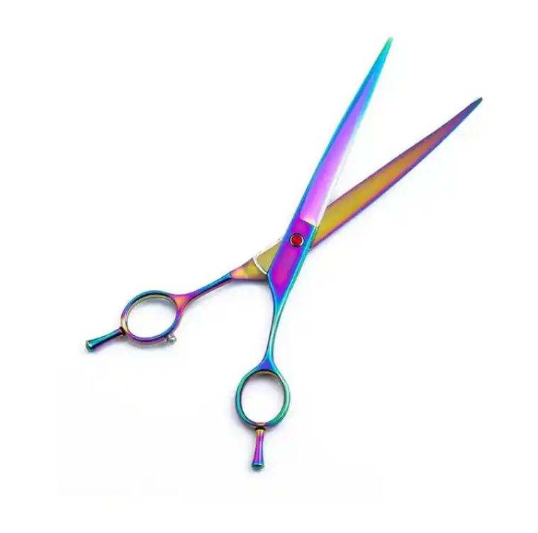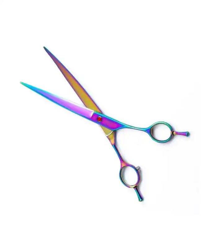 กรรไกรตัดขนสัตว์เลี้ยงสแตนเลส 7.5 นิ้ว เคลือบไทเทเนียม พร้อมสกรูแบบพิเศษและที่พักนิ้วคู่ปรับได้