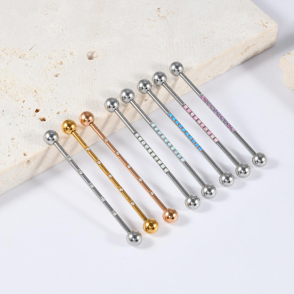 ต่างหูเจาะสแตนเลส 38 มม. แบบอินดัสเทรียล บาร์เบลล์ ประดับโอปอล ซิรคอน ชุบทอง เครื่องประดับเจาะเดอร์มอล