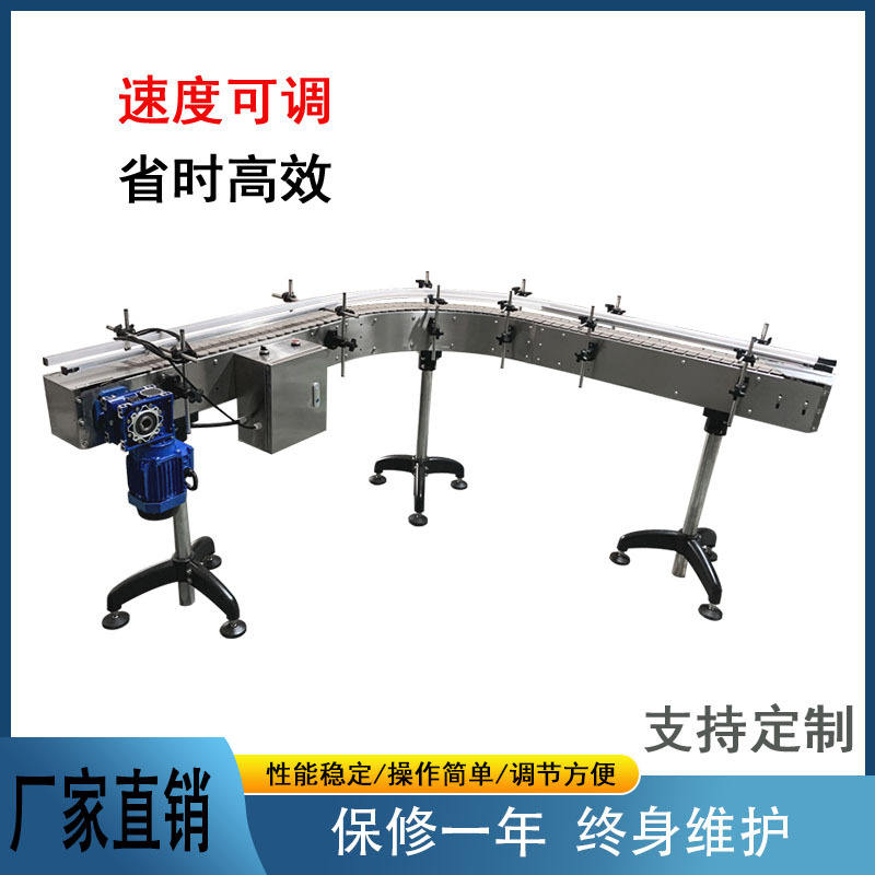 สายพานลำเลียงแผ่นสแตนเลส กว้าง 750 มม. ปรับความเร็วได้ ยาว 5 ม. สำหรับโรงงานอาหารและเครื่องดื่ม ดีไซน์ทนทาน