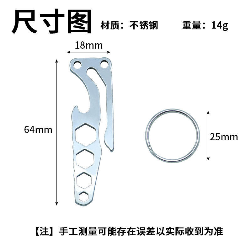ที่ใส่กุญแจสแตนเลสแบบพกพา EDC อุปกรณ์อเนกประสงค์ ที่เปิดขวด ประแจหกเหลี่ยม พวงกุญแจ