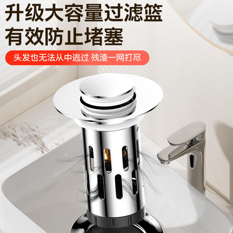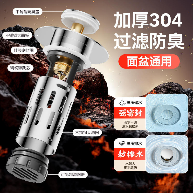 ตัวปิดท่อระบายน้ำแบบกดสแตนเลส ดีไซน์มินิมอล ติดตั้งง่าย ควบคุมด้วยมือ แบบเด้งกลับ