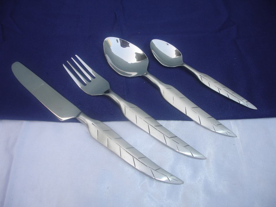 สแตนเลสแบบพกพาชุดช้อนส้อมแฟนซี 4 ชิ้นDesigner ClassicดูVINTAGEโบราณFlatwareชุดโต๊ะชุดช้อนส้อม
