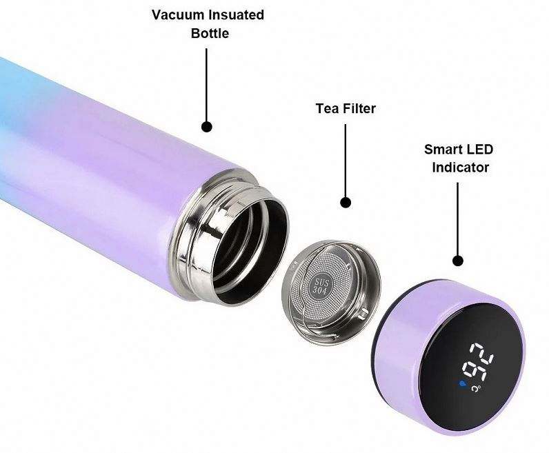 กระติกน้ำสุญญากาศสแตนเลสแบบพกพา พร้อมหน้าจอแสดงอุณหภูมิแบบดิจิตอล LED ฉนวนกันความร้อนอัจฉริยะ รักษาอุณหภูมิได้ 6-12 ชั่วโมง ของขวัญธุรกิจทันสมัย