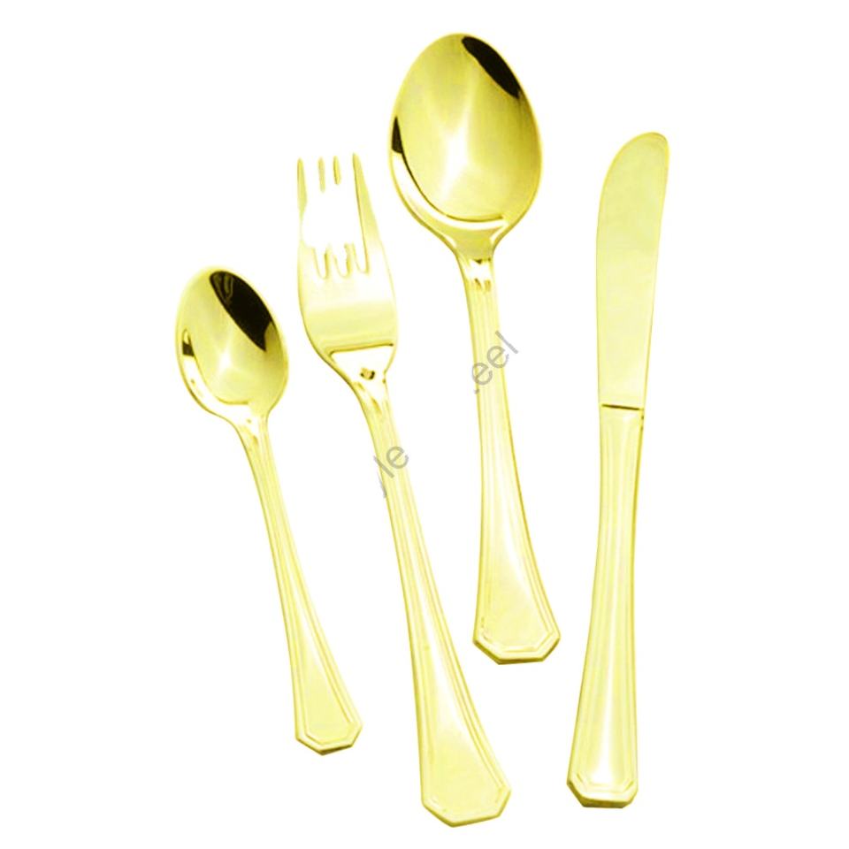 ชุดช้อนส้อมสแตนเลสแบบพรีเมี่ยม4ชิ้นสีทองมีดีไซน์คลาสสิกมีสไตล์