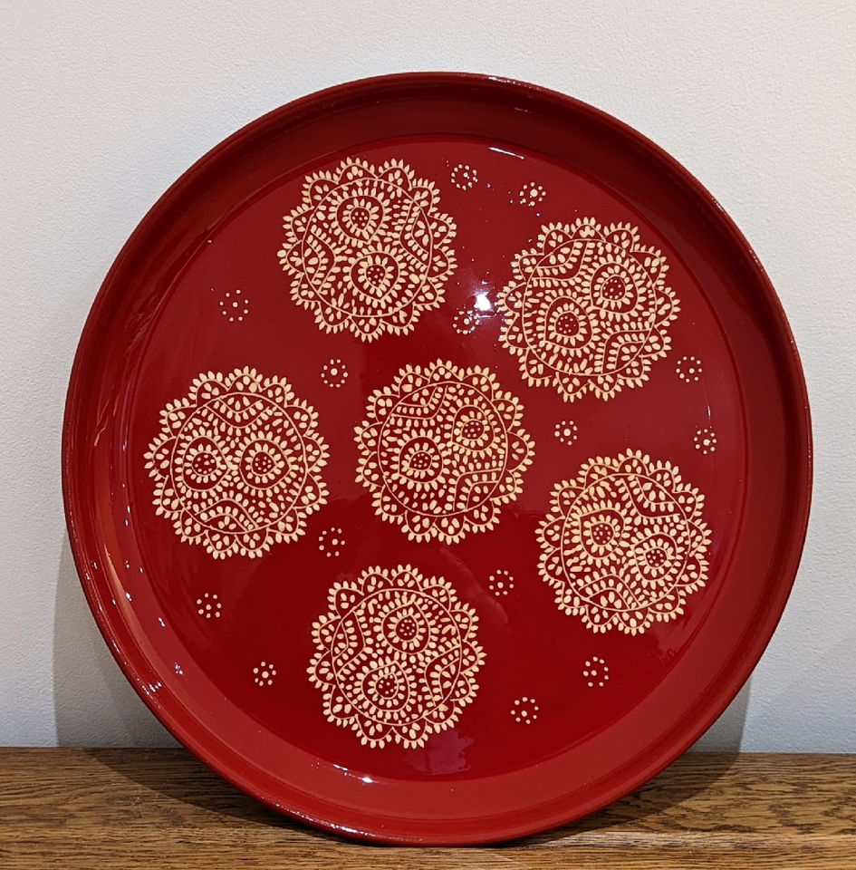 จานสแตนเลสพิมพ์ลายจานที่ชาร์จจานอาหารเย็นเคลือบสีฟ้าพิมพ์เคลือบที่ดีที่สุด