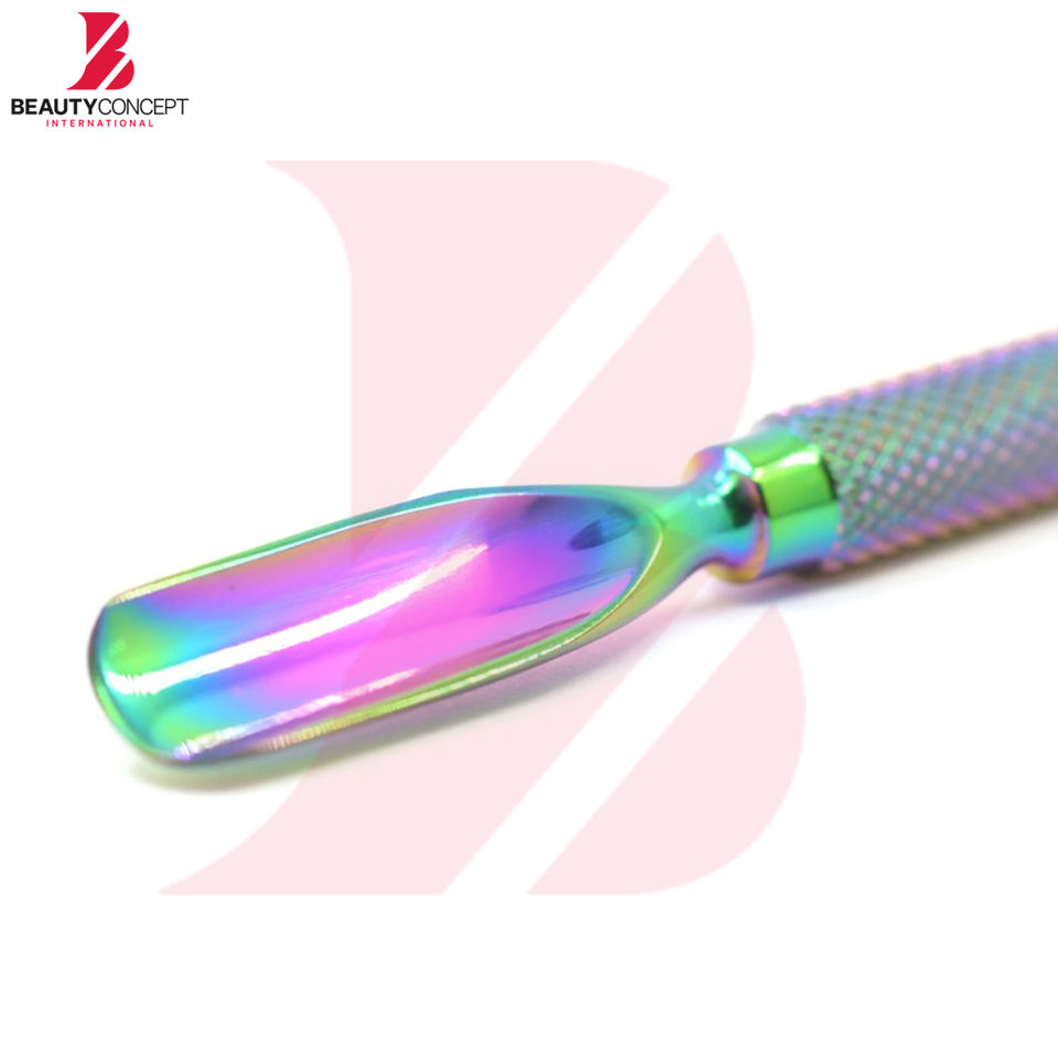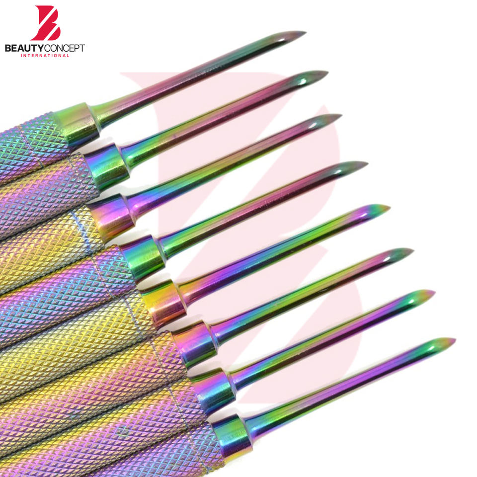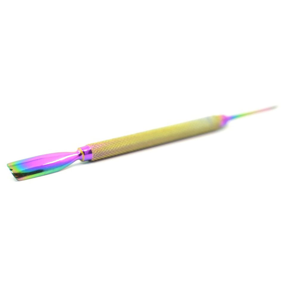 ที่ดันหนังกำพร้าปลายสองด้าน สแตนเลสสตีล เคลือบสีรุ้ง ด้ามจับกันลื่น ปลายแหลมแม่นยำ สำหรับมืออาชีพ ใช้สำหรับทำเล็บ