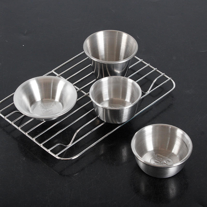 ถ้วยซอสสแตนเลสขนาดเล็ก เกรดเชิงพาณิชย์ ใช้ซ้ำได้ สำหรับใส่ซอสมะเขือเทศ น้ำสลัด ใช้ในบ้านและร้านอาหาร