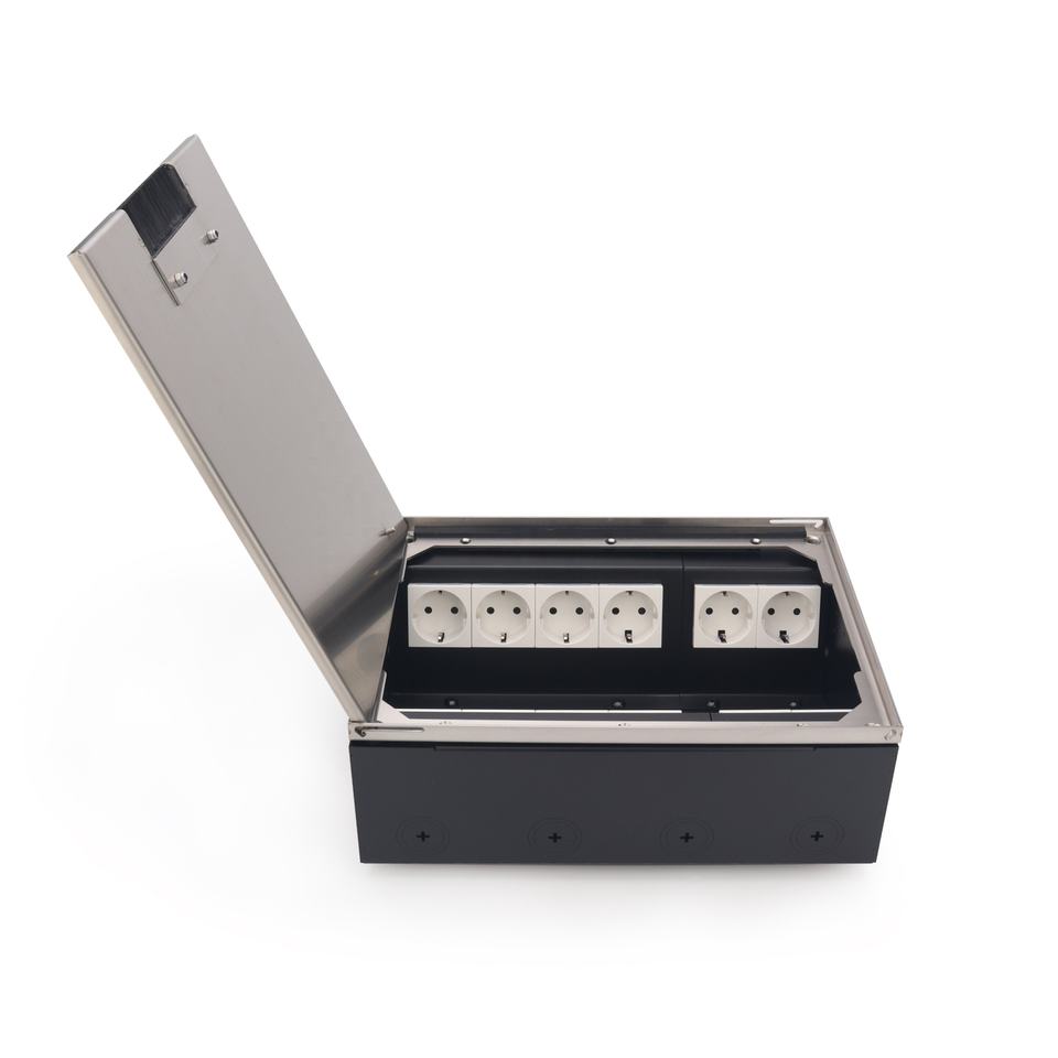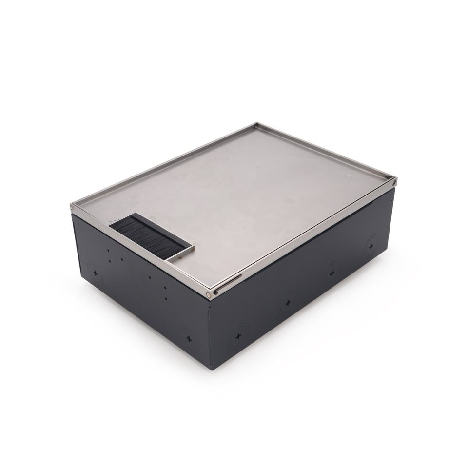 กล่องติดพื้นแบบฝังสแตนเลสพร้อมพอร์ตจ่ายไฟและข้อมูลคู่สำหรับใช้ในสำนักงาน ปรับความสูงได้