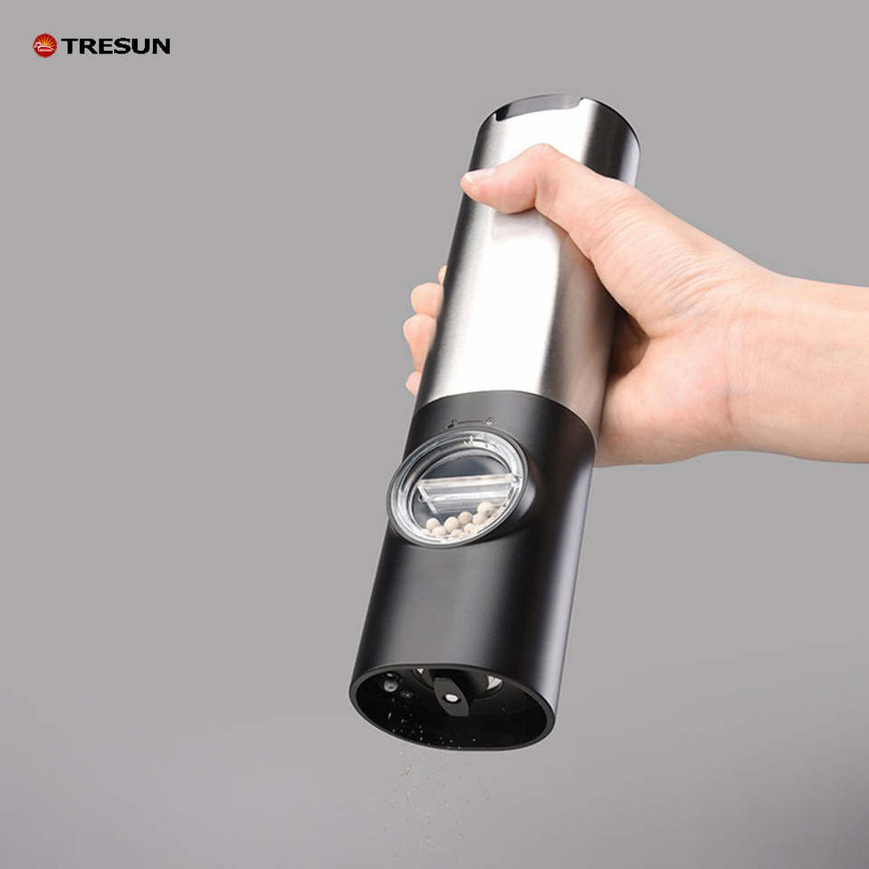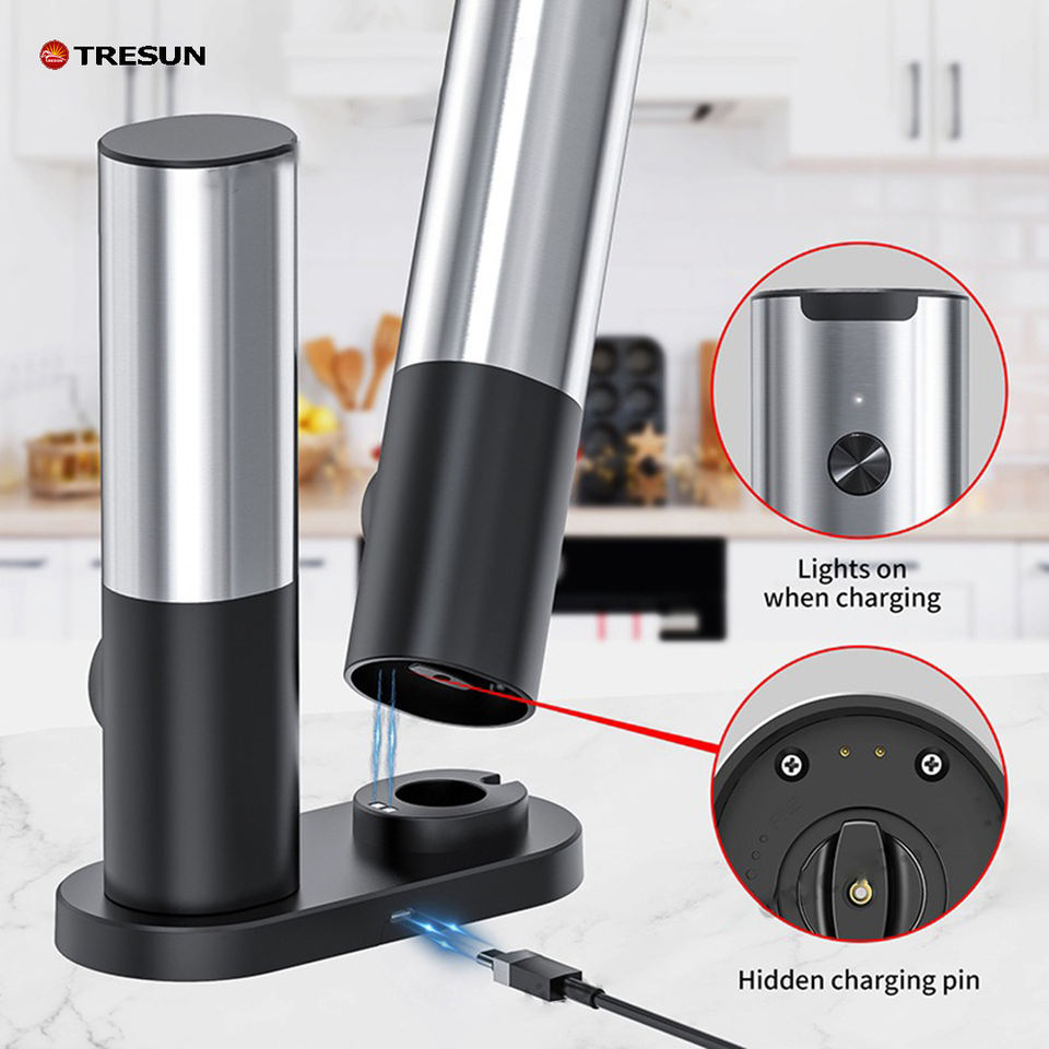 ชุดเครื่องบดเกลือพริกไทยไฟฟ้าแบบชาร์จได้ ทำจากสแตนเลส พร้อมฐานชาร์จและที่เก็บของที่สะดวกสบาย