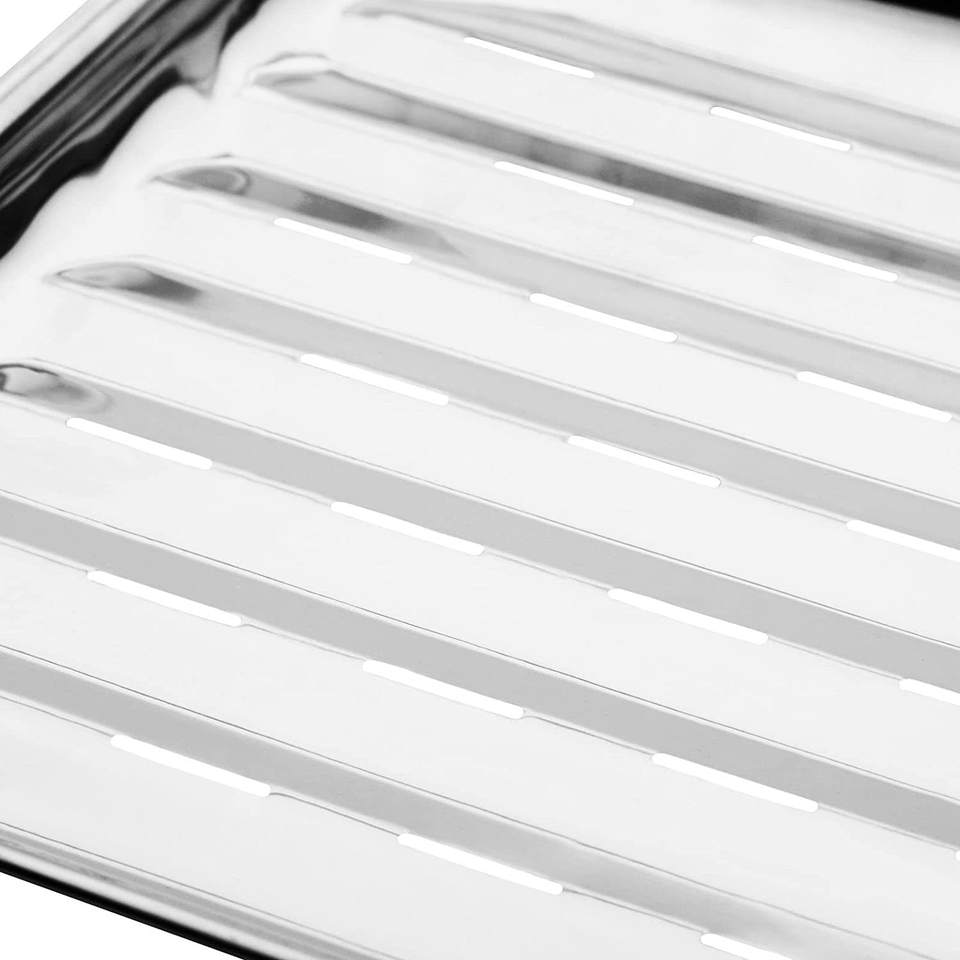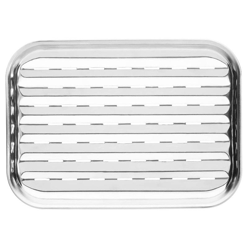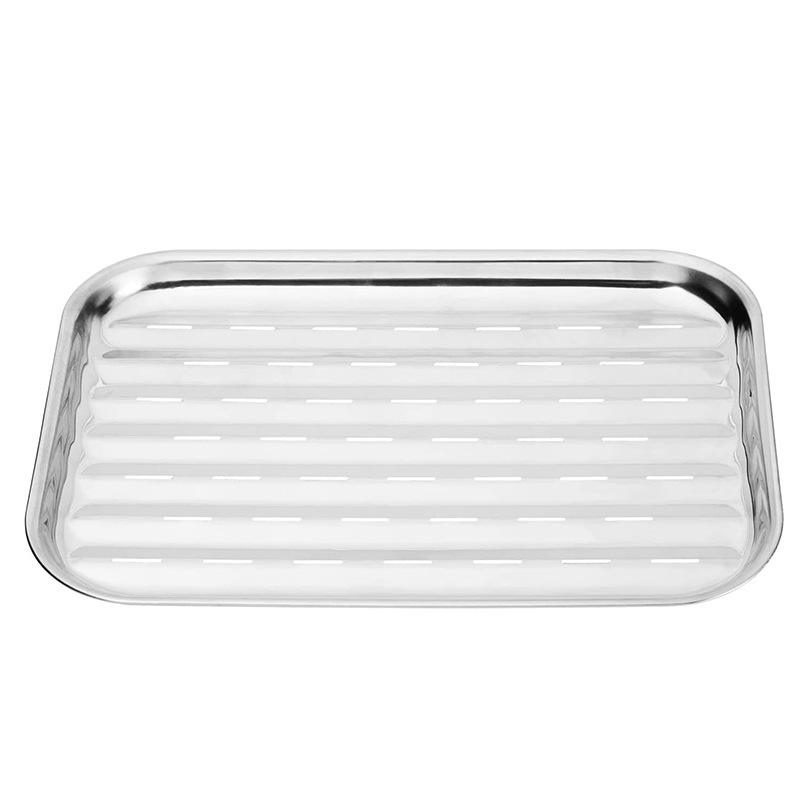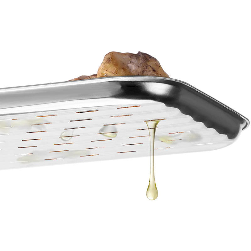 กระทะย่างสี่เหลี่ยมสแตนเลส 34.5x24x2.5 ซม. ระบายน้ำมันได้ สำหรับย่างบาร์บีคิว เนื้อ ปลา แคมป์ปิ้ง