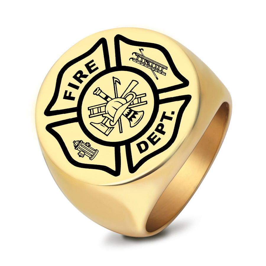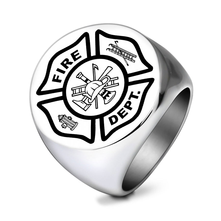แหวนสแตนเลสสตีล ลายกากบาทมอลทีส สำหรับนักดับเพลิง พร้อมสลักเลเซอร์ ใช้เป็นเครื่องรางนำโชค