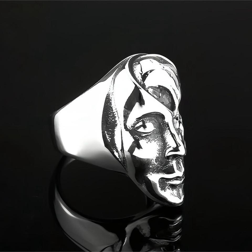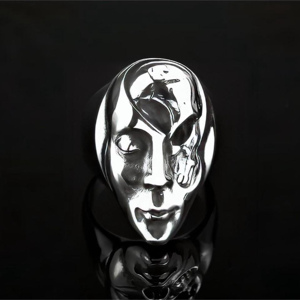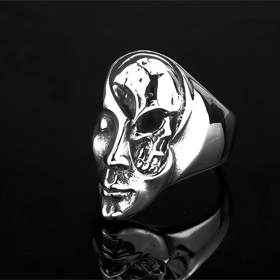 แหวนสแตนเลสผู้ชายพังก์ครึ่งหน้ากะโหลกฮิปฮอปการออกแบบทางเรขาคณิตของขวัญเครื่องประดับ