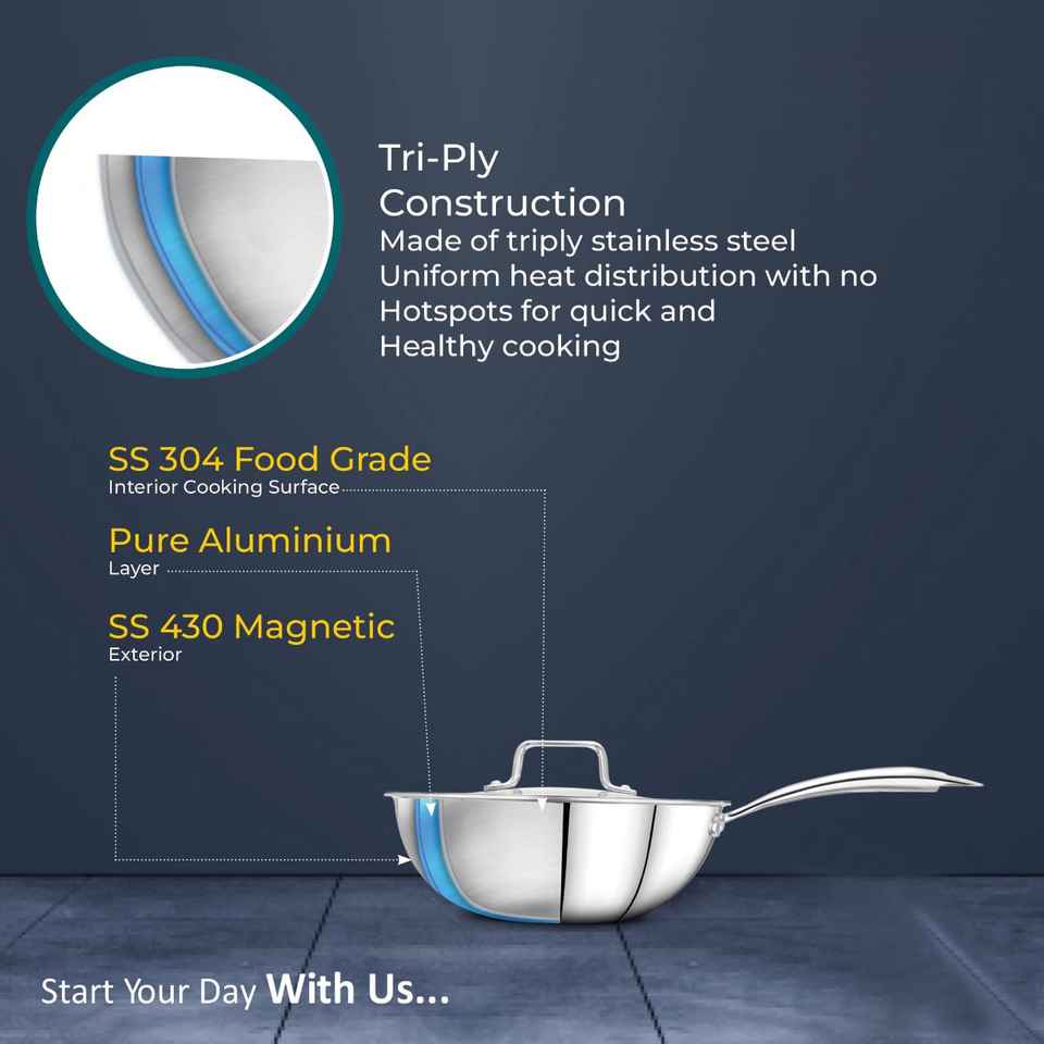 กระทะทอดพร้อมฝาปิดทำจากสแตนเลสสตีลสีเงินแปลกใหม่เครื่องครัวเกรดอาหารดีไซน์ทนทานทำความสะอาดง่าย