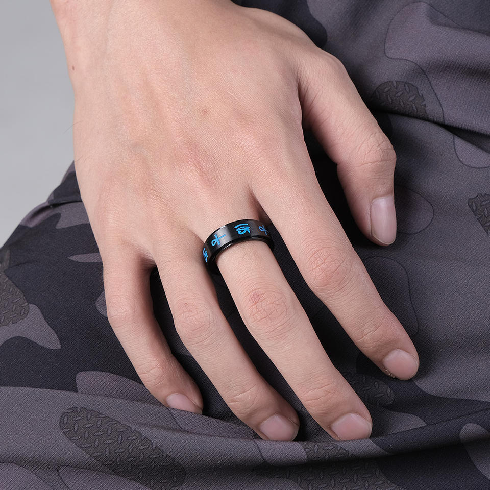 แหวนหมุนได้สแตนเลสสตีล ดีไซน์ลายอังคากอสต์อียิปต์และดวงตาแห่งฮอรัส เครื่องประดับแฟชั่นสำหรับผู้ชายและผู้หญิง ของขวัญสำหรับสุภาพบุรุษและสุภาพสตรี
