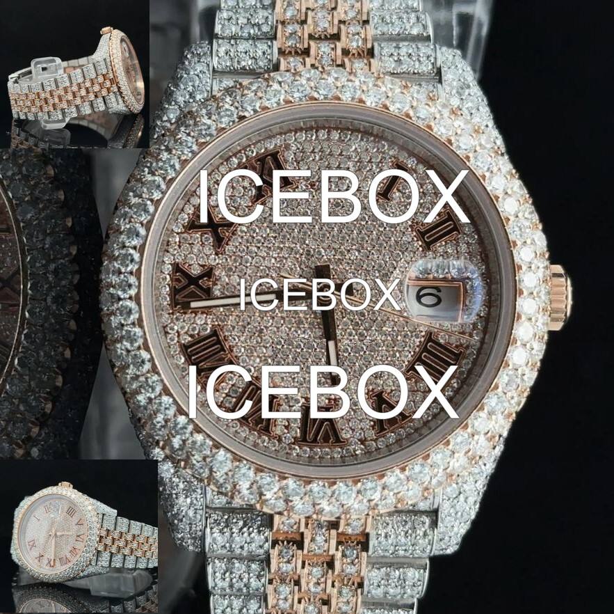 นาฬิกาข้อมือทรงกลมสแตนเลส หน้าปัดกระจก ประดับเพชรโมอิสซาไนต์เต็มหน้าปัด ตัวเรือนสแตนเลส กันน้ำ 10 บาร์ สายแบบหัวเข็มขัด