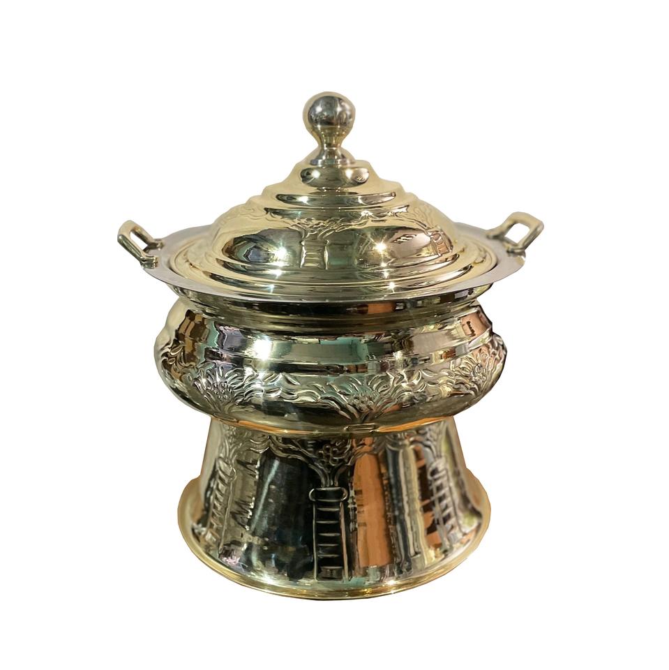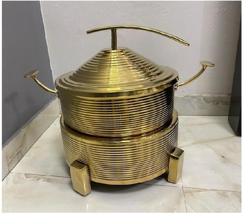 จานอุ่นอาหารสแตนเลสแบบกลมชุดบุฟเฟต์ของเหลวและอาหารจานร้อนใช้อุ่นอาหารแบบถอดออกได้