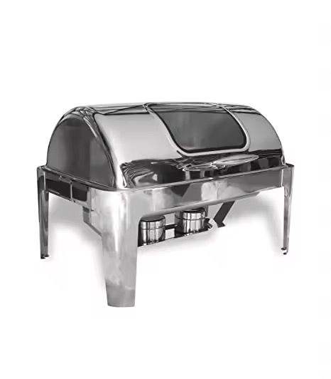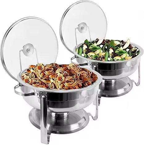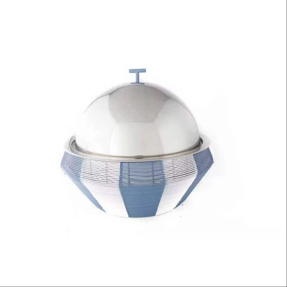 ชุดอุ่นอาหารสแตนเลสทรงกลม ฝาแก้วใส พร้อมที่ใส่เชื้อเพลิง สำหรับงานจัดเลี้ยงมืออาชีพ
