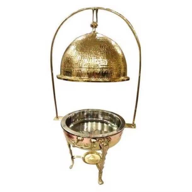 ถาดอุ่นอาหารสแตนเลสทรงกลมพร้อมขาตั้ง ฝาปิด สำหรับบุฟเฟ่ต์ โรงแรม ร้านอาหาร