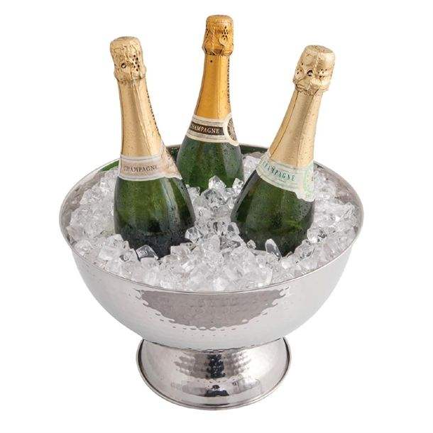 ชามแชมเปญทรงกลมสแตนเลสพร้อมฐานสีเงิน สำหรับใส่ไวน์ ค็อกเทล เหมาะสำหรับใช้ในบาร์ โรงแรม และงานปาร์ตี้