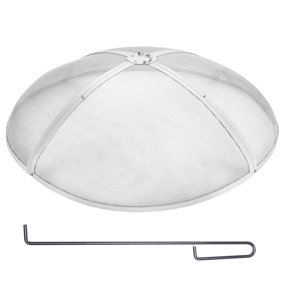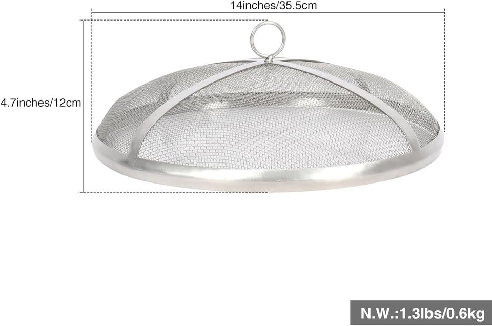 ฝาครอบเตาไฟทรงกลมสแตนเลสพร้อมตะแกรงและหูจับ สำหรับลานบ้านกลางแจ้ง ป้องกันเศษไฟกระเด็น
